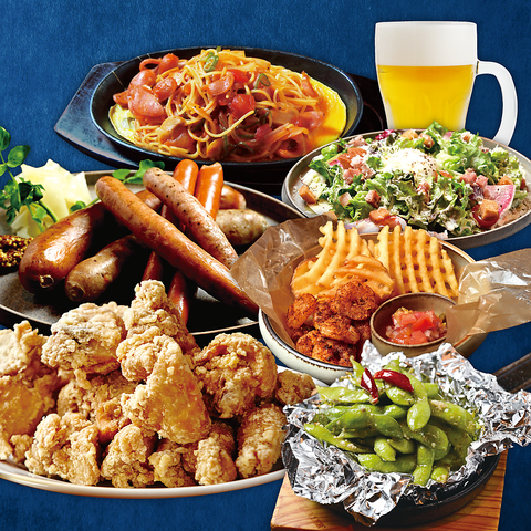 ケラケラ名物の「兵庫県但馬産鶏ももの唐揚げ」を中心に、お酒にぴったりの人気メニューを揃えたプランです★