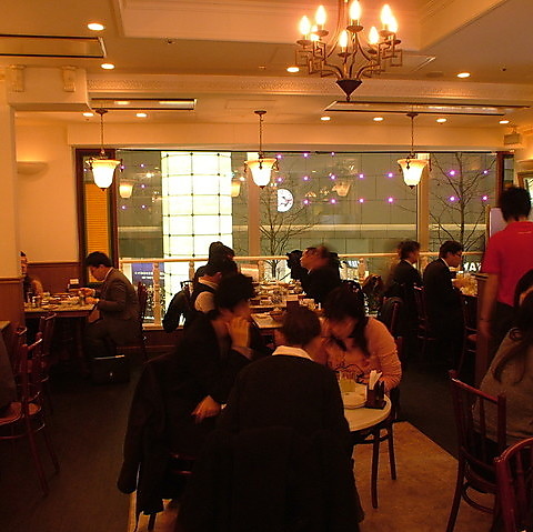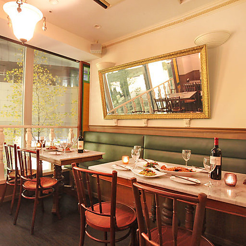 地下1階ながら眺望が抜群…!ディナータイムでは、汐留のイルミネーションを眺めながら、お食事やお酒をお楽しみ頂けるお席もご用意しております。