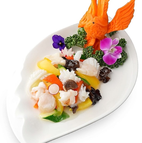 新鮮なホタテ、プリプリのエビ、そして食感が楽しい紋甲イカを、彩り豊かな野菜とともに軽やかな塩味で炒めた海鮮好きにはたまらない一皿です。素材本来の旨味を引き出しつつ、見た目も華やかに仕上げました。本場中国のコックが腕を振るう本格的ながらも食べやすい味付けで、お酒のお供にもぴったりです◎