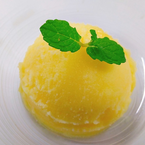 アイスクリームにホワイトチョコとカカオバターを加えた甘さの中にもコクの深さを感じるデザートとなっております。