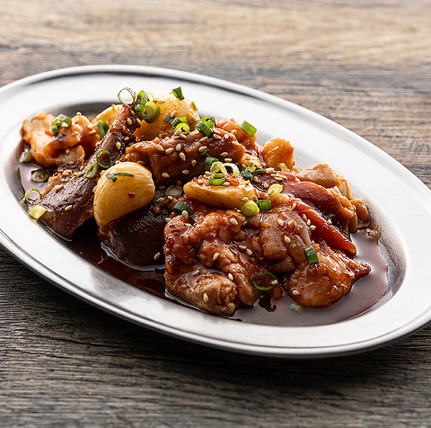 ニンニク好きにはたまらない!ピリ辛でボリュームたっぷり!味も本気!値段も本気!★いろんなホルモンを、にんにくたっぷりのピリ辛ダレで漬け込んだやみつき必至の混ぜ盛りです。