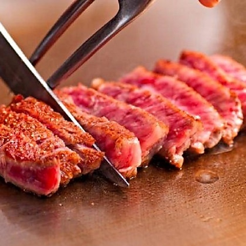 鹿児島県から産地直送された【さつま福永牛】の中でも特に肉質の柔らかいメスの黒毛和牛を100gからリーズナブルなお値段にて鉄板焼きで提供します。※メス牛が入荷困難な場合はオス牛になります。