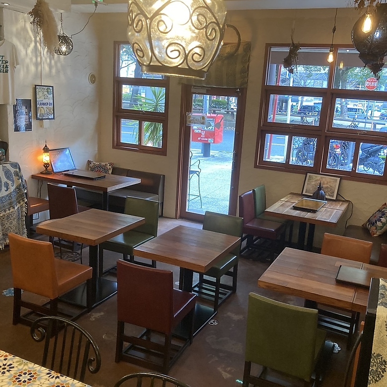 モロッコタイルのカウンターやこだわりのインテリアが飾られる店内は、ゆったりとくつろげる、まさに大人の隠れ家♪リゾート感溢れる店内、オープンテラスもあり開放的。異国情緒な時間を楽しんで下さい。