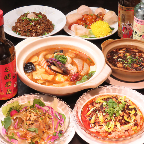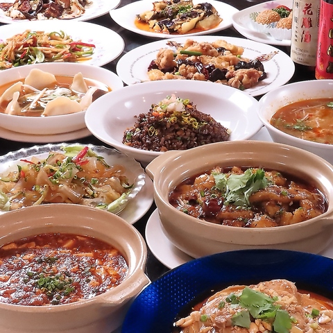 四川バンバン鶏や青椒肉絲、四川小火鍋など全12品付いて4000円!+2000円で飲み放題付きに変更可能です。