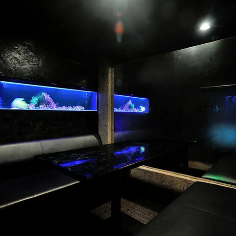 【落ち着いた空間◎】スタイリッシュ感あふれるVIP個室。水槽に囲まれた癒し空間で極上のひと時をお過ごし下さい。