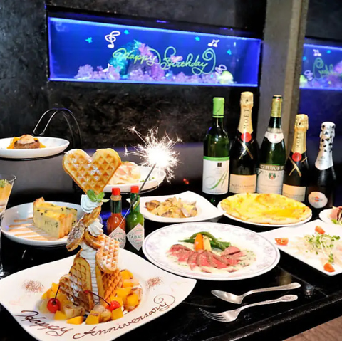 【こだわり演出】3時間飲み放題付コース【水槽にオリジナルメッセージでゲストが喜ぶ宴会】