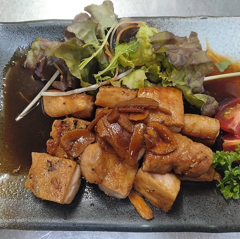 ガーリックがしっかり効いたとんてきは、旨み濃厚で酒のアテにぴったり。食欲そそる一品です。