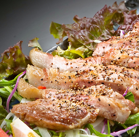 黒胡椒焼を山わさびで食べると、肉の旨味にわさびが染み込んでおいしいです!豚肉と山わさびの相性◎