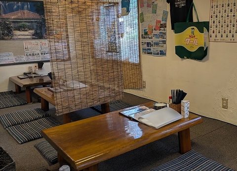 外観はもちろん、内観にも沖縄を楽しめるこだわりあり!南国を感じるPOPやメニュー、味のある雰囲気で気分は沖縄♪時にはオーナーの三線演奏も聞けちゃうかも?
