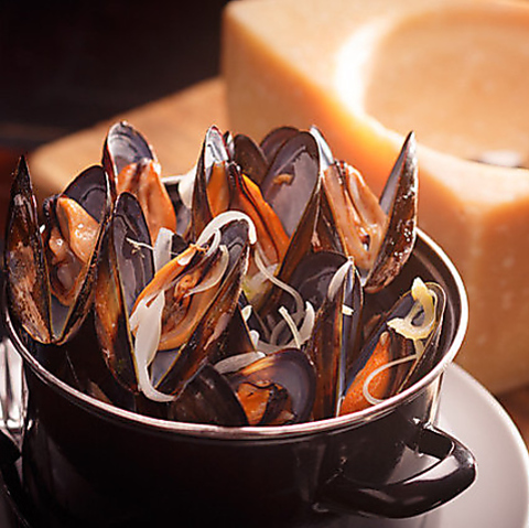 新鮮なムール貝を蒸しあげました。白ワイン/ビール/ガーリックハーフから蒸し方をお選びください。 ※画像はイメージです。<400g>・・・1705円(税込)