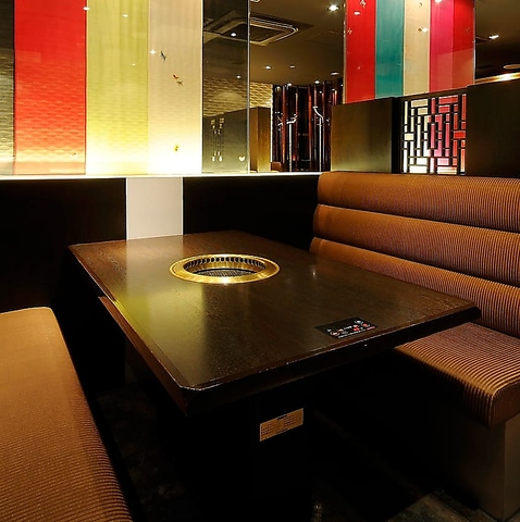 【匂いも気にせず安心してご利用いただけます♪】当店は全席無煙ロースター完備なので、匂いや煙などを気にせずに安心して焼肉ををお楽しいただけます!ですので女子会やご家族でのご利用にも◎個室のゆったり空間で足を伸ばしてお寛ぎいただけます!食べ放題はもちろん、特別な宴会には黒毛和牛コースもぜひどうぞ☆