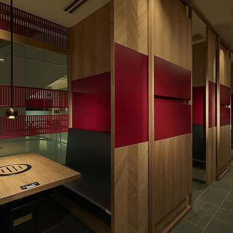 木と和紙が織りなす、和の温もり溢れる店内。赤をアクセントにした空間が特別な時間を演出します。全席が個室または半個室のため、プライベートな空間でお食事が楽しめます。普段使いから、ご家族や大切な方の記念日にもおすすめです。