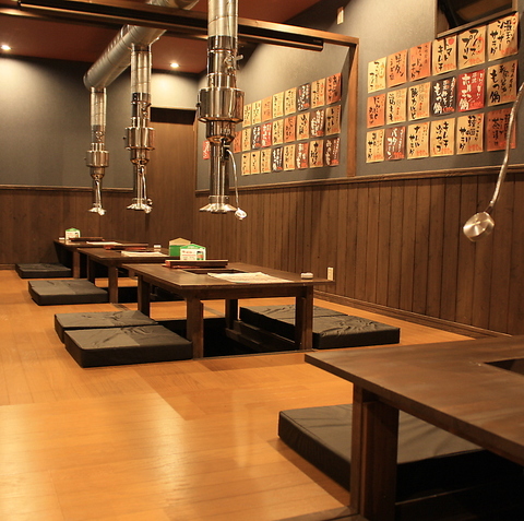 《宴会・飲み会にも♪広々とした掘りごたつ席》宴会や飲み会にもおすすめの広々とした掘りごたつ席をご用意しております!ゆったりとお食事をお楽しみ頂けるお席、店内で美味しい焼肉ともつ鍋をご堪能下さいませ。