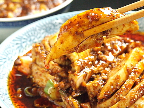よだれが出るほど美味しい鶏…、が由来の『よだれ鶏』。コクのある地鶏に四川ならではの麻辣の刺激。