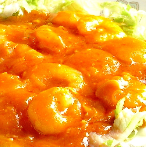 ぷりっぷりの海老を特製チリソースと絡めた、ご飯にもお酒にも合う大人気メニューです。甘辛いソースの奥に海老の旨みが凝縮されており、何度食べても飽きません。当店では、こちらの「海老のチリソース炒め」を968円(税込)でご提供しております。ぜひ出来立て熱々をお召し上がりください。