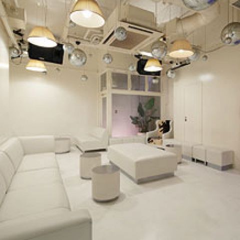 白が基調のラグジュアリー空間。地下1階と地下2階から成る当店はラウンジ・VIPルーム・ダンスフロアがある
