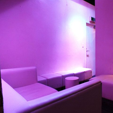 白が基調のラグジュアリー空間。地下1階と地下2階から成る当店はラウンジ・VIPルーム・ダンスフロアがある