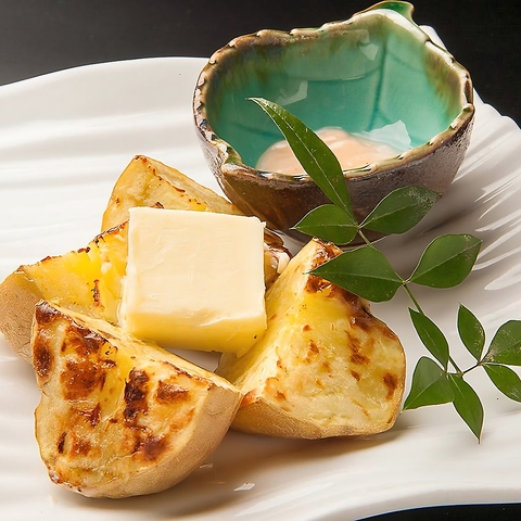 ホクホクとした甘みが特徴の北海道産じゃがいも「北あかり」に、コク深いバターをたっぷりと。さらに自家製の塩辛を添えることで、濃厚な旨みと塩味が加わり、やみつきになる味わいに。北海道らしさを感じられる、お酒にもよく合う人気の一品です。