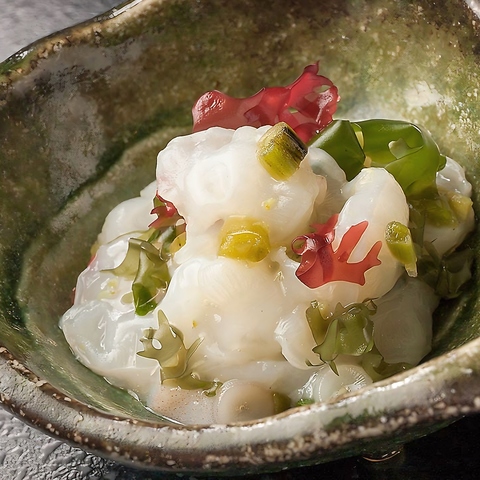 活タコの食感と旨みを活かし、葉わさびでさっぱりと仕上げた人気の一品。ピリッとした辛みがアクセントとなり、お酒との相性も抜群。海鮮料理の一品や箸休めとしてもおすすめです。