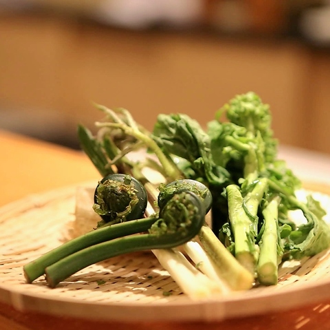 季節限定の山菜3種を天ぷらでご用意しました。 爽やかなウドの香りと、ヒトピロ(行者ニンニク)のガツンとした旨みがクセになる、お酒の肴にもぴったりの一品です。