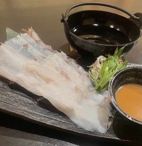 北海道の美味しいミズダコを薄く大きくスライスし、しゃぶしゃぶしていただくこちらの料理。専用の味噌ベースダレにつけて召し上がっていただきます。「野菜も一緒にしゃぶしゃぶしてタコと一緒に召し上がっていただくと、また違う美味しさがあるので、ぜひ味わっていただきたいです」と店長もイチオシです!