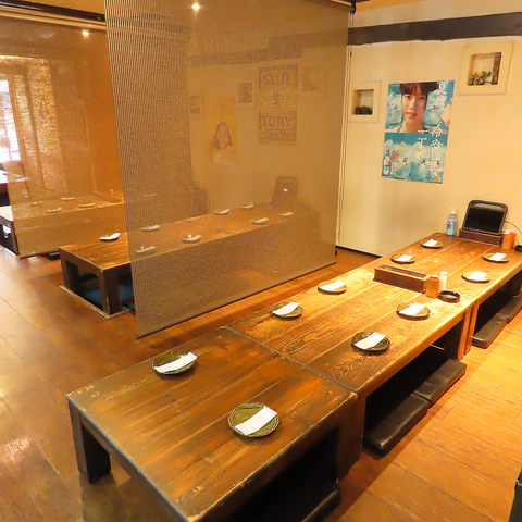 | 掘りごたつ個室 | 4名様×2 | 掘りごたつなのでゆっくりくつろげます。完全個室ではありませんが、独立した仕切りがあり、隣の席とはすだれで仕切りをしています。2名様~4名様でのご利用に最適。つなげると最大10様までご利用いただけます。 |