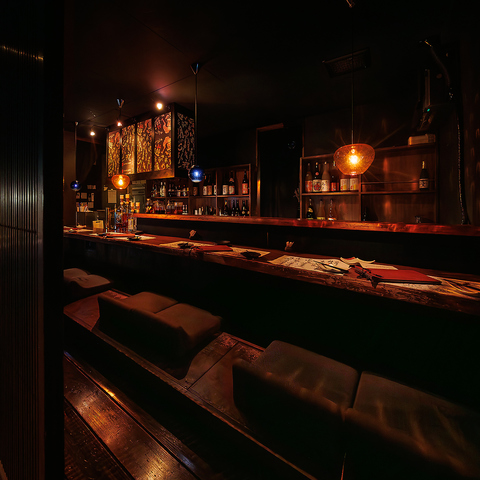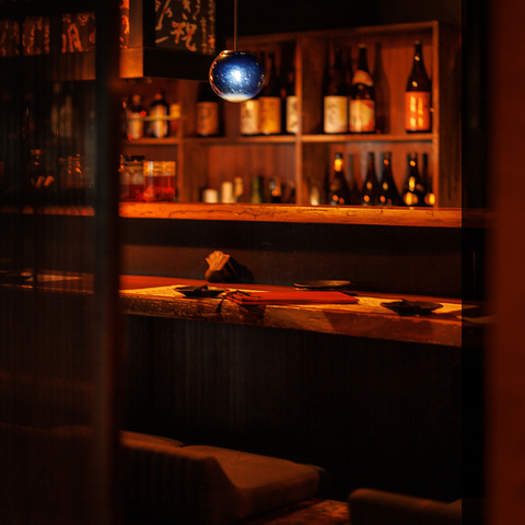 【大人空間の2Fカウンター】今夜はゆっくり寛いで飲みたい方や、大切な人を連れて行きたい時に最適◎お一人様はもちろん、隣同士で座って会話を楽しみながらお食事をお楽しみいただけます。贅沢なひとときをどうぞごゆっくりお過ごしくださいませ。