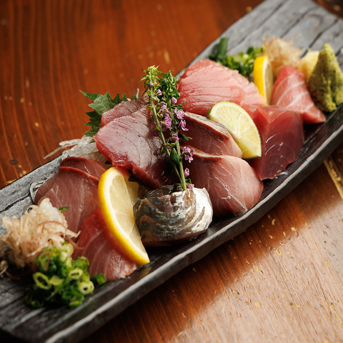 鮮魚の盛り合わせは、新鮮な魚介を贅沢に盛り合わせた一皿です!2人前から5人前まで、人数に応じてご用意いたしますので、皆様でシェアしながらお楽しみいただけます♪色とりどりの美しい盛り付けが華やかで、味わいも絶品。是非お酒と共にお楽しみください!※写真はイメージです
