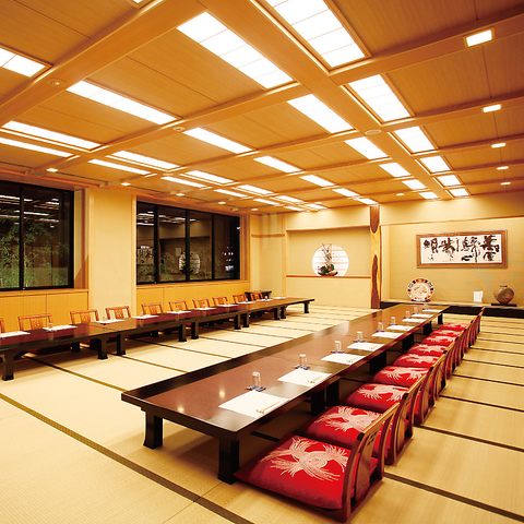最大55名様まで対応できる地域最大級の宴会個室。会社の懇親会や歓送迎会、結婚式の二次会などにも最適です。広々としたお座敷で、心地よい非日常空間を演出。人数やレイアウトもご相談ください。