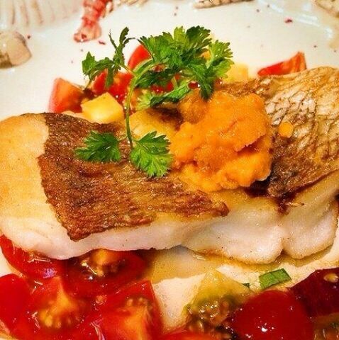 その日に仕入れた新鮮な魚介を使った1品。シェフが一から手作りのコク深いソースとトマトが絡み、絶品です。