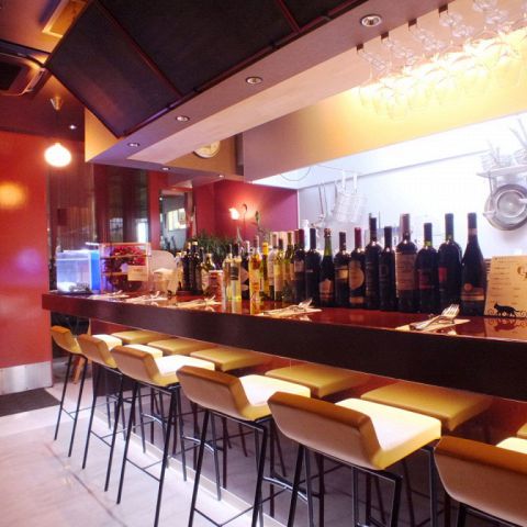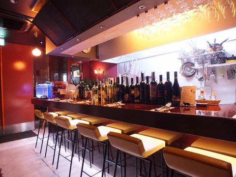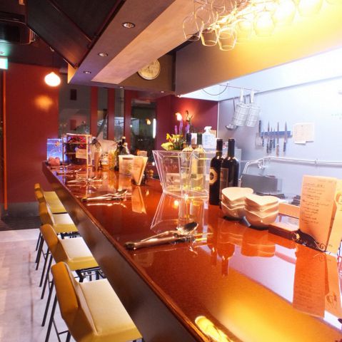 料理長がもてなすこだわりの料理の調理を目の前で愉しみながら、ワインや美味しい料理をどうぞ♪お1人様も安心です。駅より徒歩約1分なので、2軒目にも◎