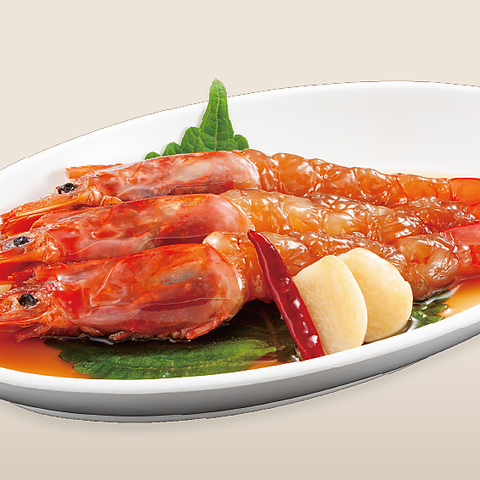 生の赤海老を秘伝の醤油タレに漬け込みました。ケジャン(蟹のタレ漬け)の海老バージョン!※ご注文は2尾から承ります。