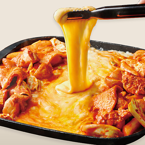 甘辛く味付けされた鶏肉や野菜、トッポキを、鉄板で溶かしたトロトロのチーズに絡めて召し上がれ!※ご注文は2人前から承ります。