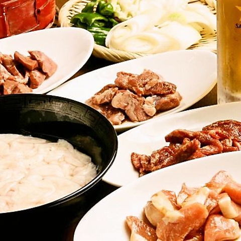 美白どんぶりホルモンや赤肉4品などがついたお得なセット!90分飲み放題付