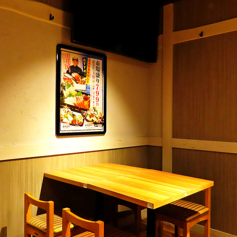 | ソファー | なし :木を基調とした、どこか懐かしい雰囲気の漂う店内には“大小個室”完備。 |