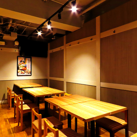 【大小様々なテーブル席】飲み会・フラッとサク飲み会など幅広いシーンでご利用いただけるテーブル席を完備!当店自慢のお料理とお好きなドリンクと一緒に心ゆくまでお楽しみください。34名様まで対応可能な加熱式たばこOKフロアあり。