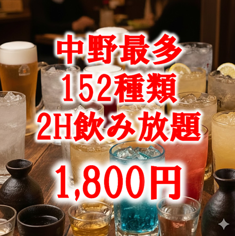 【単品飲み放題】ドリンク100種以上♪2時間1800円!ご一緒に串物がおすすめ◎※週末祝前+500円となります