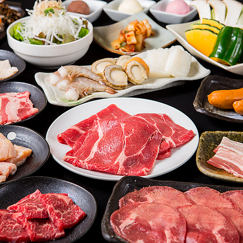 人気の牛タンや牛フィレ肉を含む、全100種類のプレミアム焼肉食べ放題が大人気!