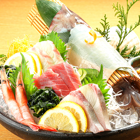 イカ姿のお刺身と鮮度抜群の刺身を一緒盛り!「豪快!イカ姿入り刺身5点盛り」
