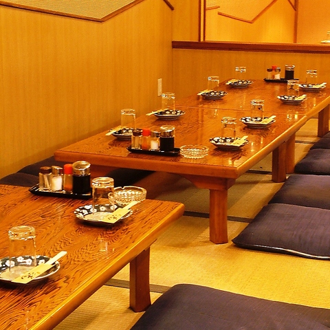 足を延ばしてゆっくりくつろげる座敷席でのんびり食事をお楽しみください。少人数宴会にもピッタリです。