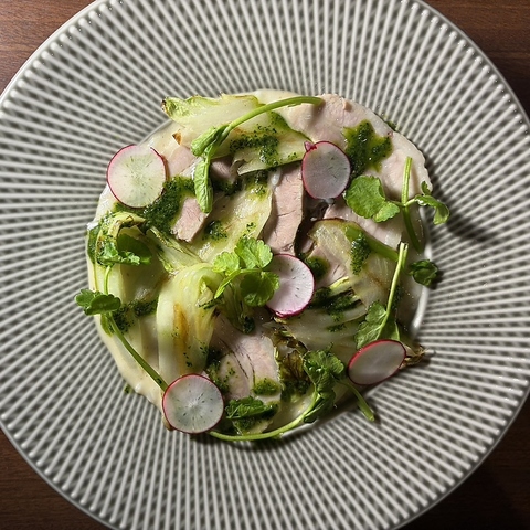 『豚肉のボリート、豆と七草のラグーリゾット』