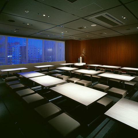 一流デザイナーが手掛けたスタイリッシュな店内★間接照明で落ち着いた雰囲気!!どちらのお席に座ってもゆったりとお寛ぎ頂けます !4名様前後のお席や、最大60名様のエリア貸し切りなど充実♪団体様のご予約はお気軽にお電話ください!