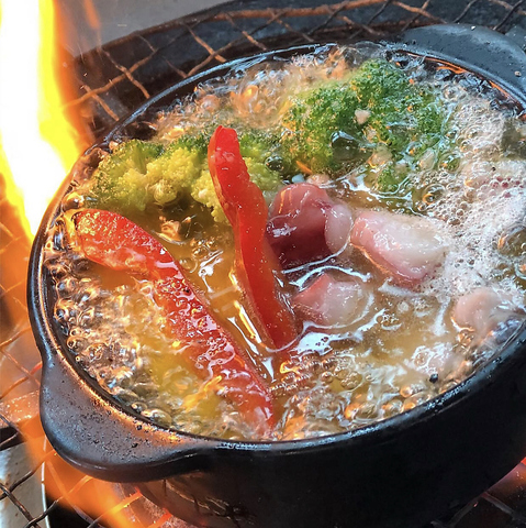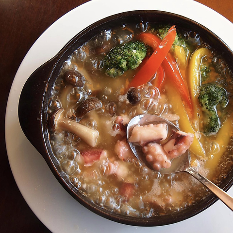 Pulpoのアヒージョはアツアツ具だくさん♪そのまま食べるも良し◎バケットに盛り付けて頬張るも良し◎