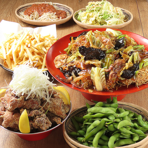 空高く積み上げられたポテトに唐揚げ…コスパに厳しい幹事さまも納得の新メニュー♪当日予約OKでこの値段!幹事の株があがるお店です!