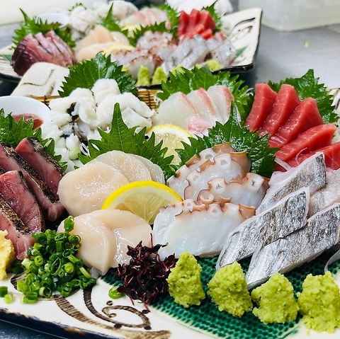 (二人前より)店主自ら豊洲で仕入れたり、明石浦より直送された鮮魚の数々は旬そのもの。店主の目利きによりその季節の一番美味しいお魚を味わっていただいています。ぜひ、ご堪能ください。