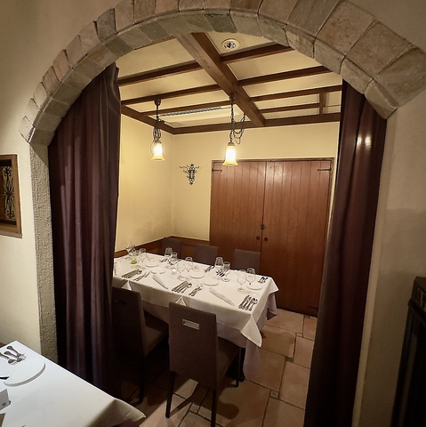 イタリアの家庭のリビングに招かれたような、温かみのある4名掛けのお席です。テーブルクロスが敷かれた清潔感のある空間で、本格的なトスカーナ料理をシェアしながら楽しむスタイルが人気。気取らない高級感と、自宅のような居心地の良さが共存しており、初めてご来店いただくお客様もすぐにリラックスいただけます。