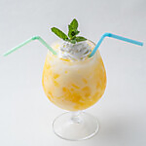 グラスの中でお転婆なハンプティ・ダンプティが踊り出す♪マンゴーとカルピス、ミルクの入ったクリーミーな味わいはいかが?