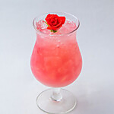 もし白い薔薇があったりでもしたら大変。早く赤く塗らなきゃ! フルーティなサングリアテイストのワインとローズのシロップをペンキ代わりにどうぞ使って。