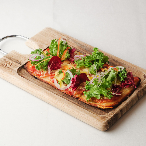 季節替わりで具材が変わる気まぐれドイツ風ピザ。 【彩り野菜とサラミのフラムクーヘン】 ※画像はイメージとなります