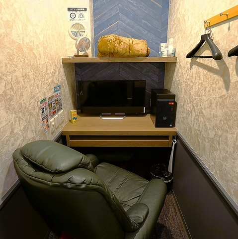 鍵付き完全個室のリクライニング席です。急なリモートでの打ち合わせや通話などもできます。